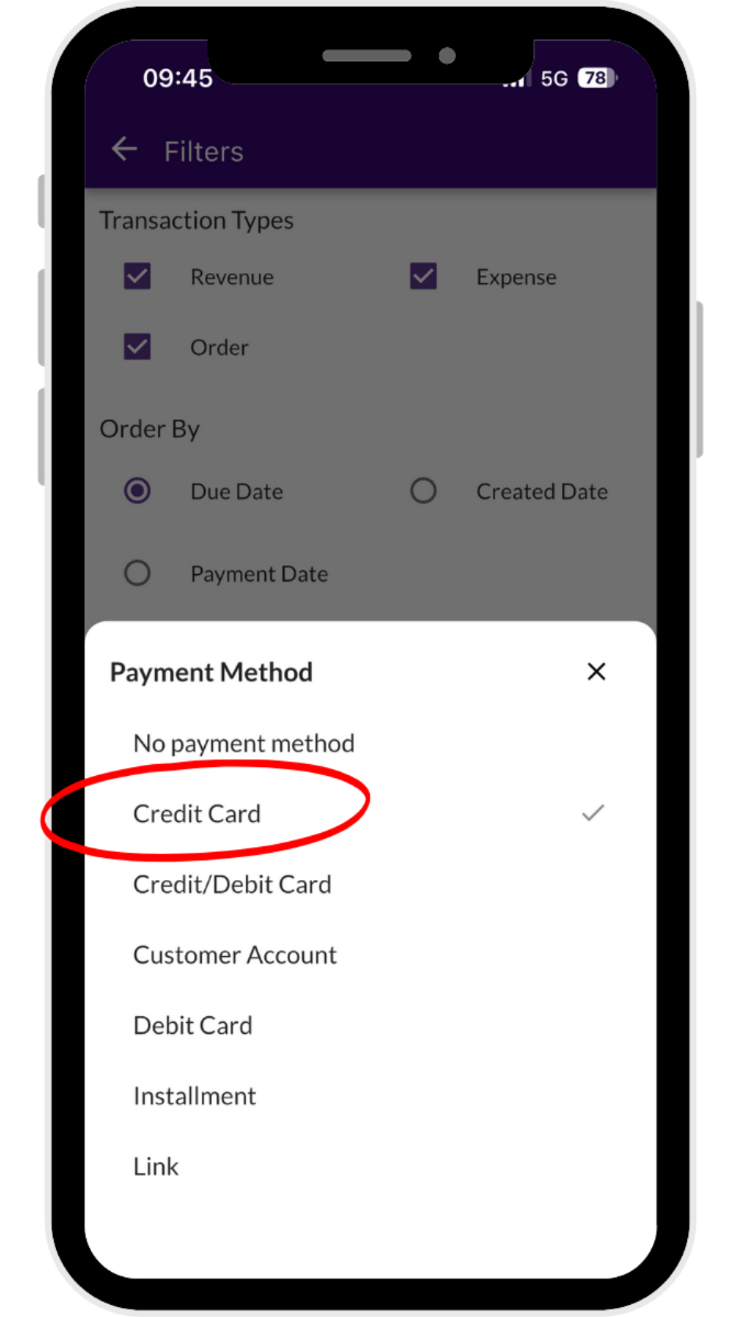 You select “Credit Card” but set the date filter to “Last 7 days.” If the credit
