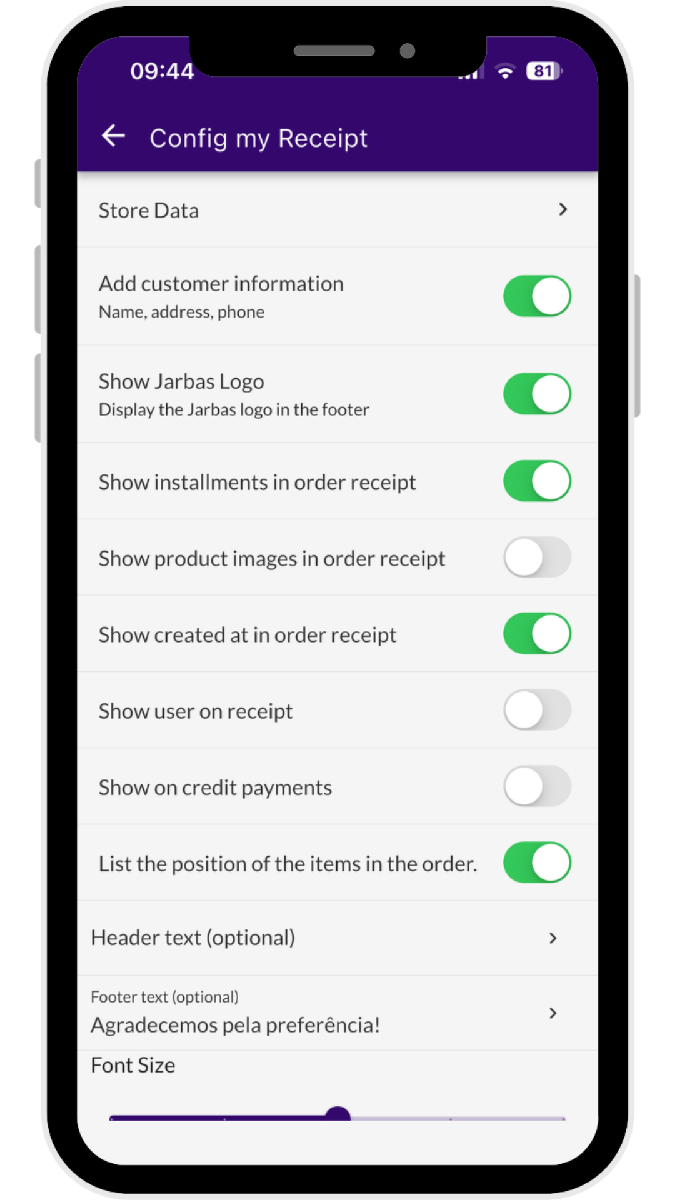 article, we will explain the main Jarbas receipt settings and how to use them.