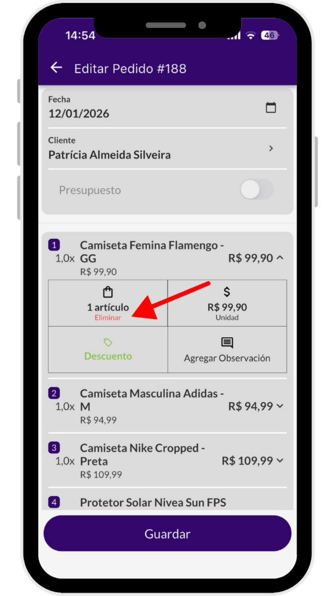 producto ya fue descontado del inventario), el producto eliminado volverá