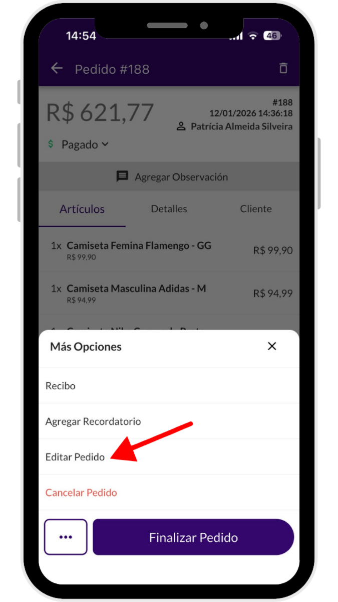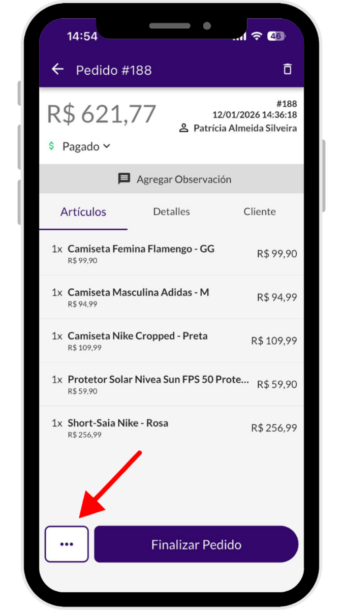 los tres puntos, ubicados junto al botón Finalizar pedido.
