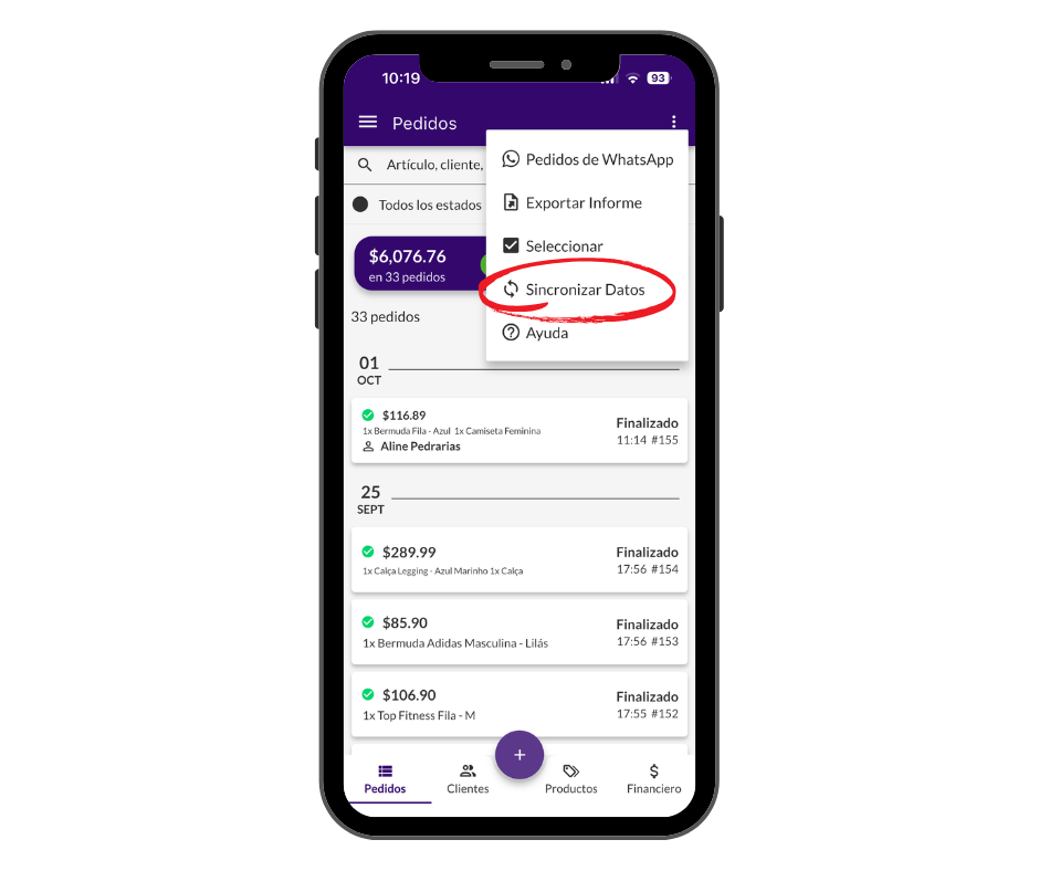 Sincronizar tus datos con frecuencia ayuda a mantener tu lista de pedidos
