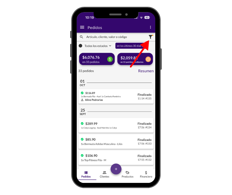 Si los pedidos aún no aparecen, vuelve a la pantalla de Pedidos,