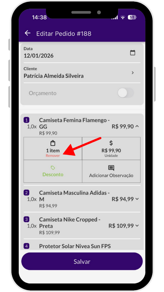 2. Edite o pedido