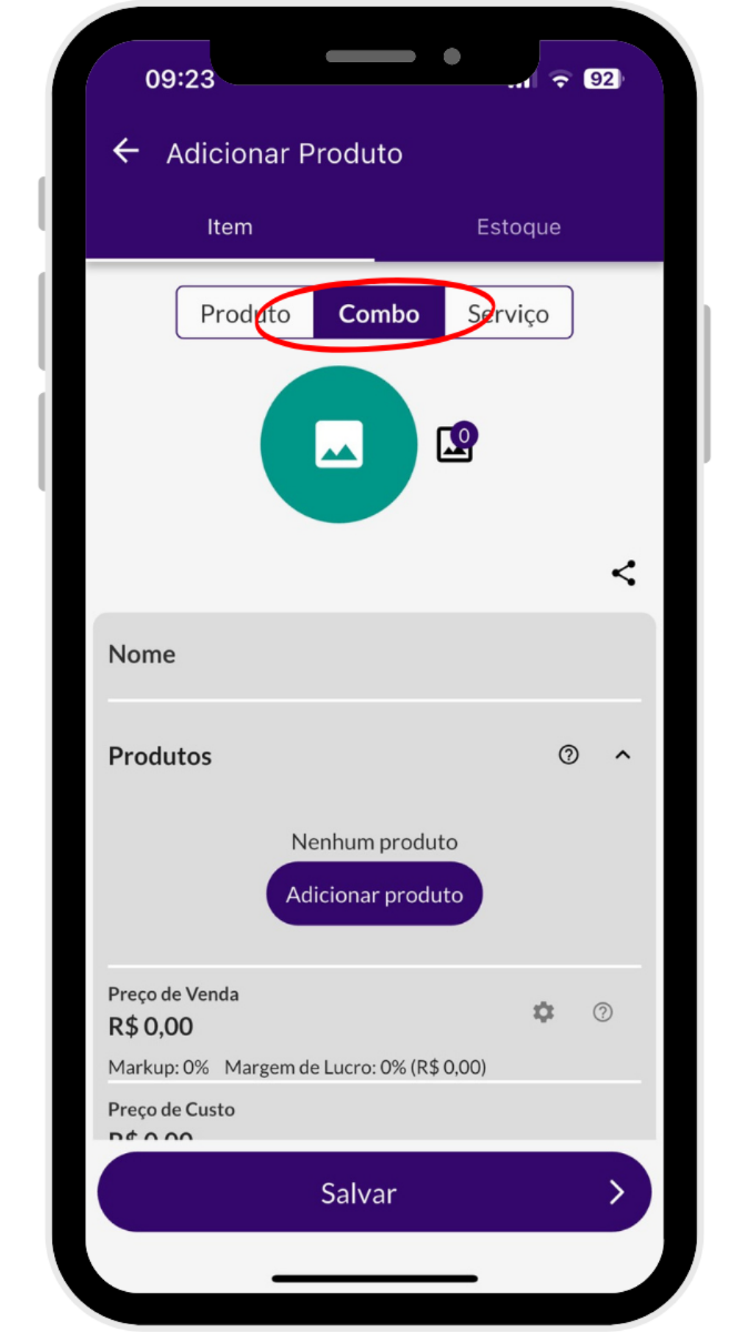 adicionar os produtos que fazem parte do combo, informar o preço do combo,