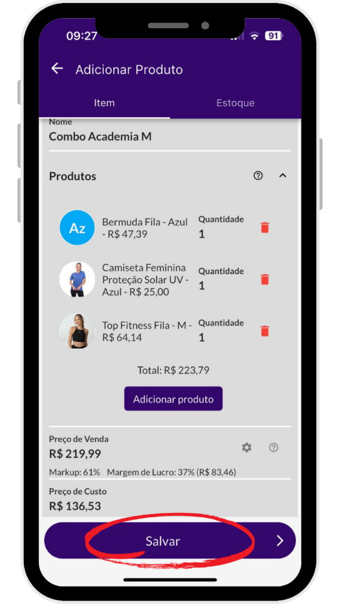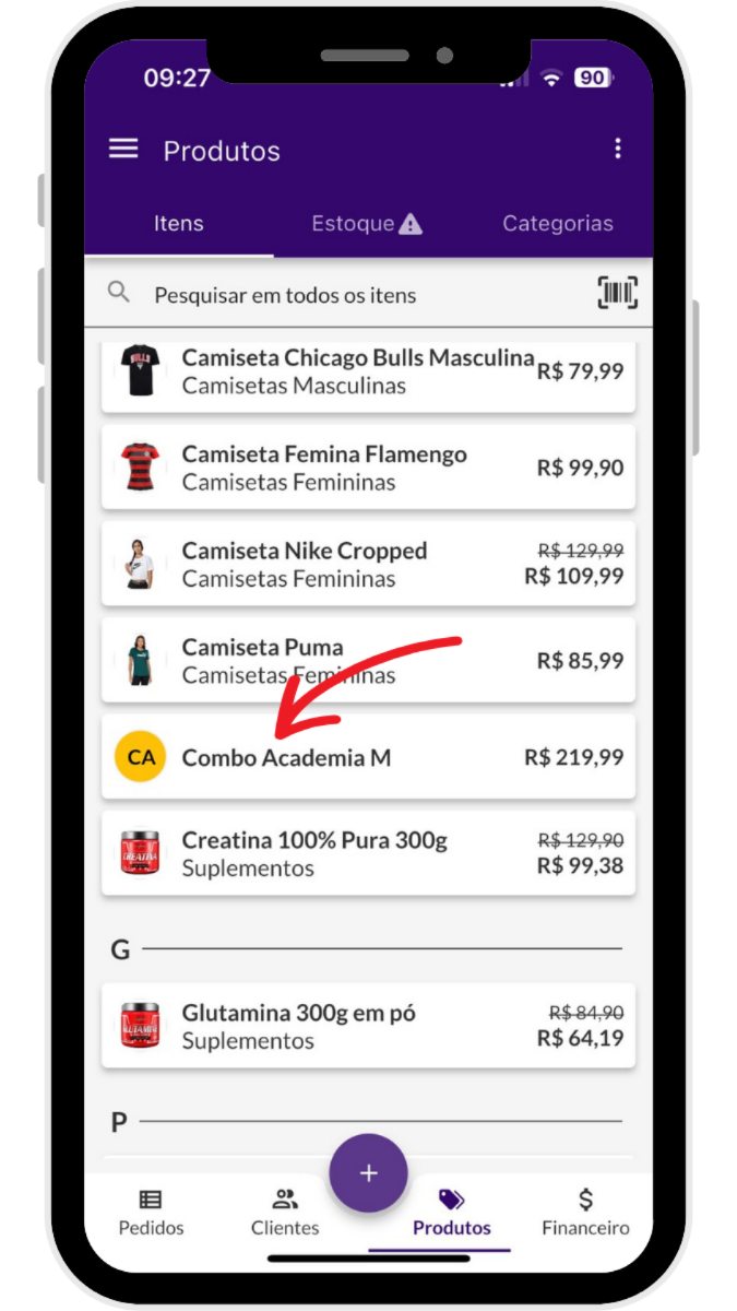 E pronto, seu combo está cadastrado! Agora é só voltar para