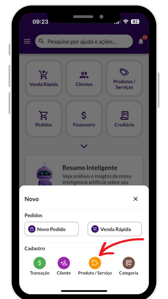 + na parte inferior da tela e depois toque em Produtos/Serviços.