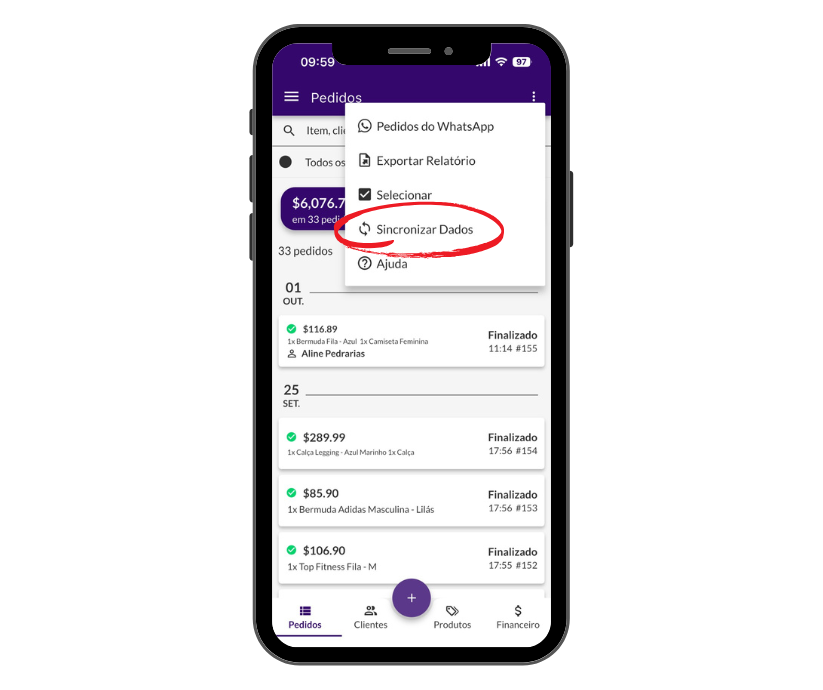Se os pedidos ainda não aparecerem, volte à tela inicial e
