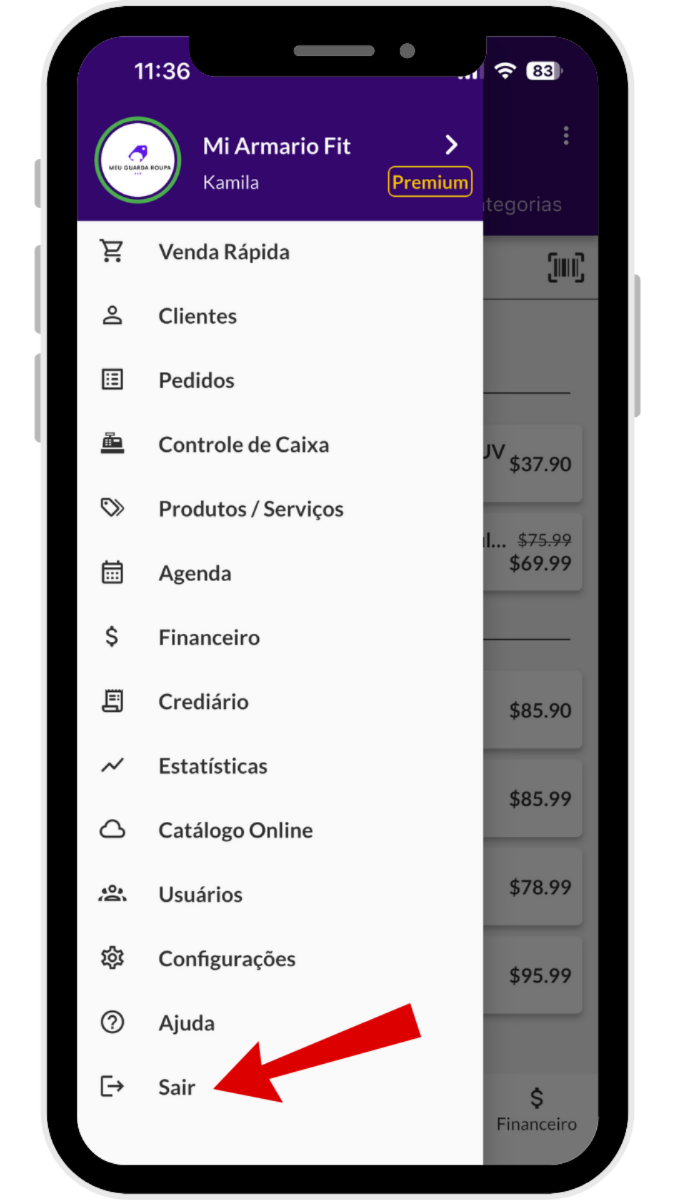 acesse Produtos/Serviços novamente. Toque nos três pontinhos no