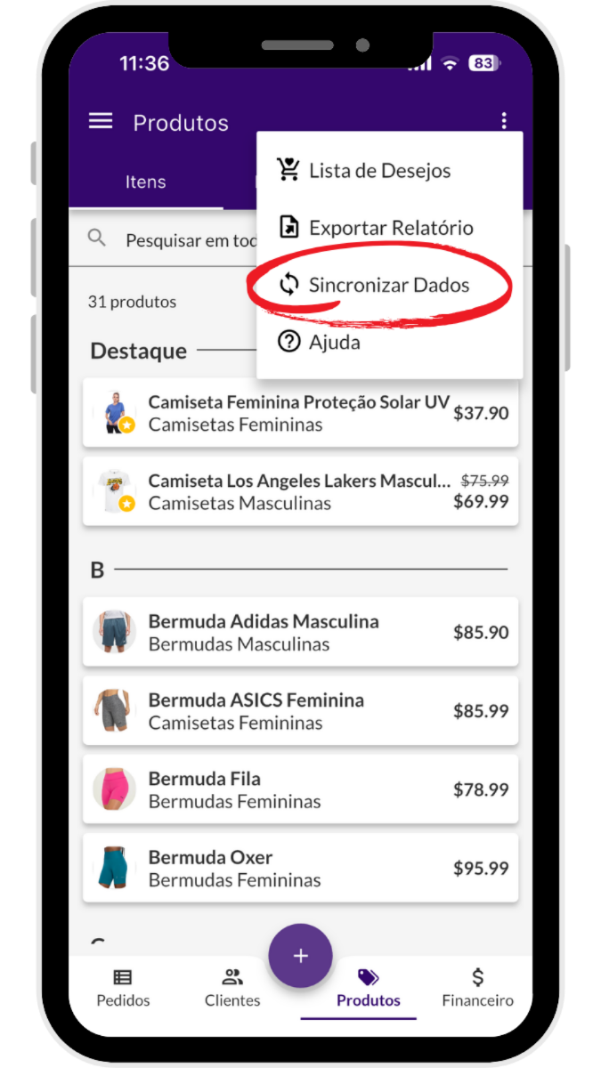 Sincronizar seus dados com frequência ajuda a manter a lista de produtos e