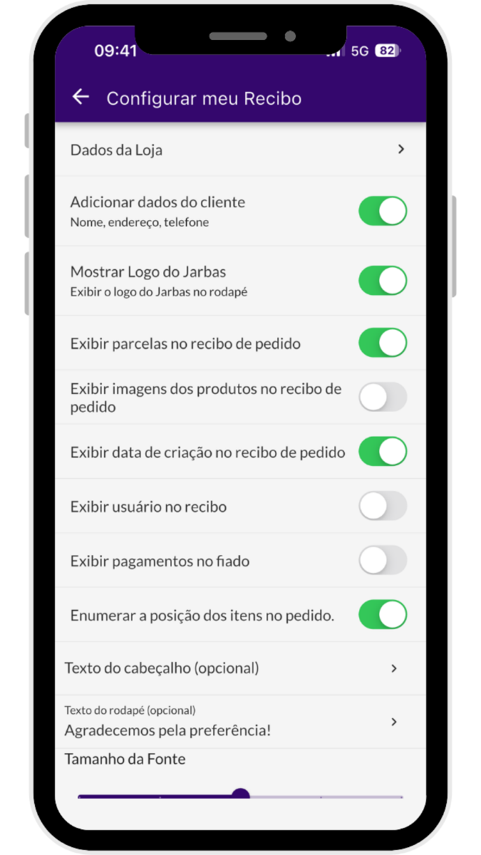 habilitada, o recibo mostrará a data em que o pedido foi criado, no rodapé da